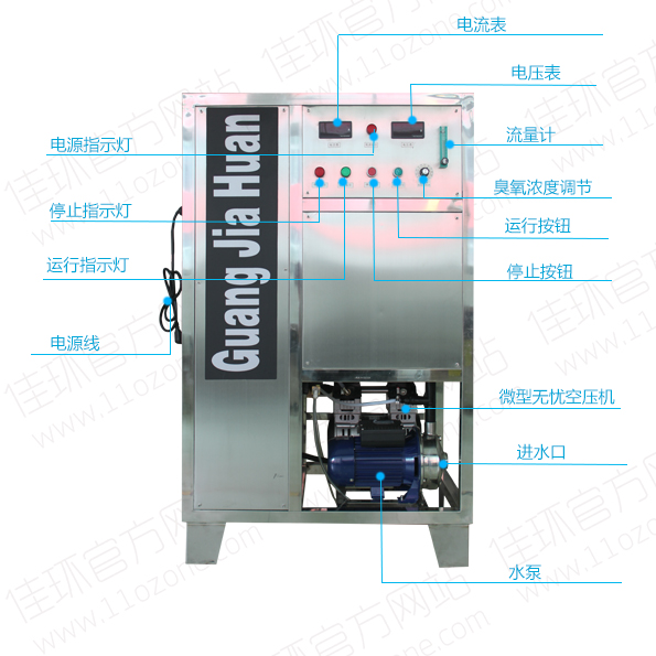 整臺機(jī)尺寸:830*550*1420mm臭氧產(chǎn)量:30G/H